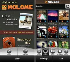 Molome adalah merupakan aplikasi yg memudahkan kita utk membagi aktifitas hidup kita. Ambil ponsel kamu yg ada kameranya, silakan potret sana potret sini atau ambil dari koleksi foto yg ada, berikan polesan efek dgn sedikit dan berbagi dgn teman kamu atau keluarga di jejaring sosial yg kamu miliki.